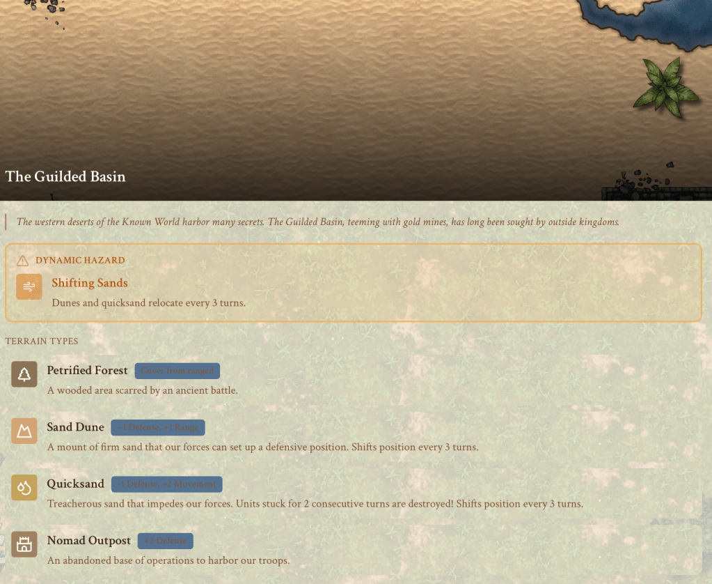 Armies should keep an eye on the sand. It is always shifting and may change the tide of battle in an instant.