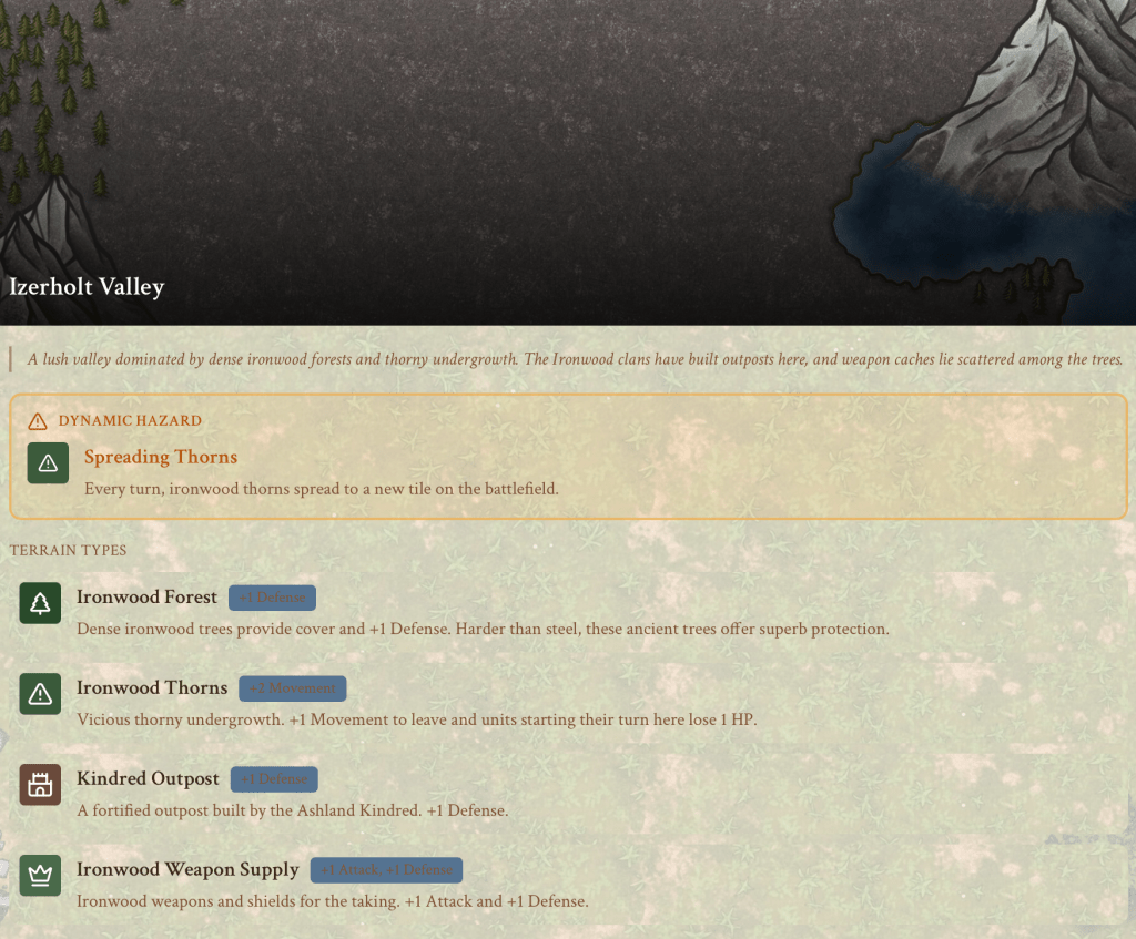 The Izerholt Valley is known to have spreading thorns made of the same material. Be careful as you navigate your army through this region. If you are caught in the embrace of thorns, it may be your ruin.
